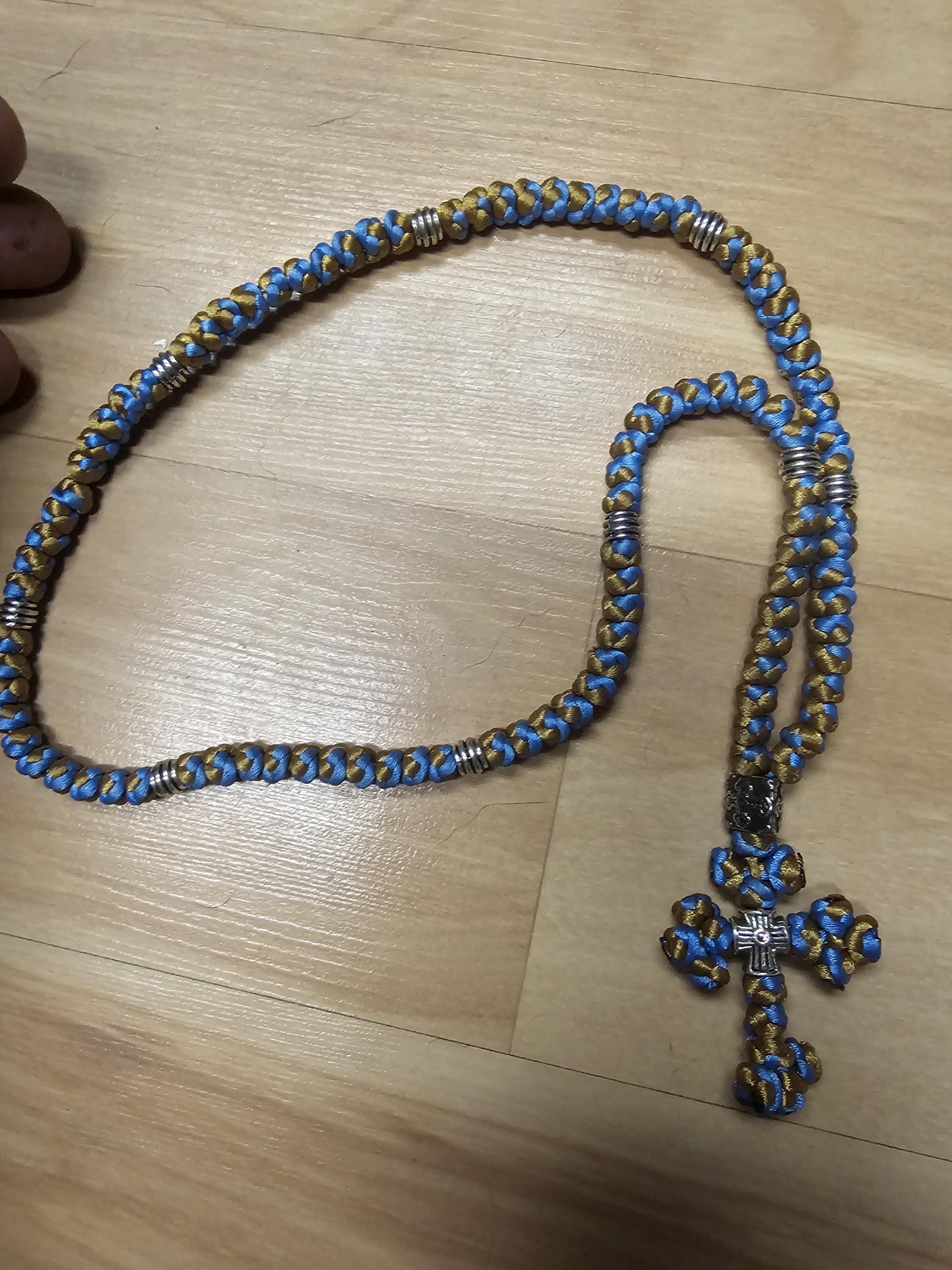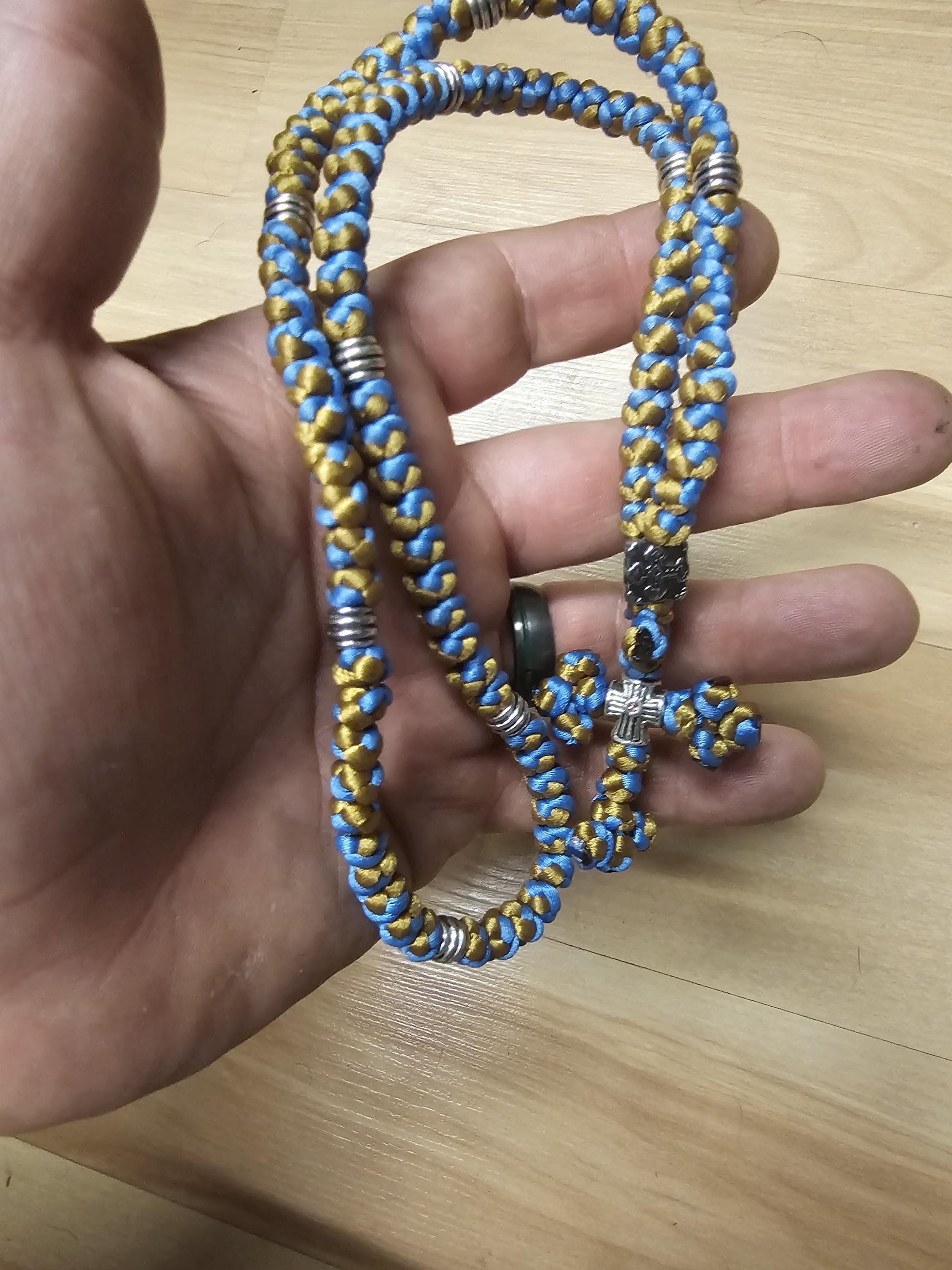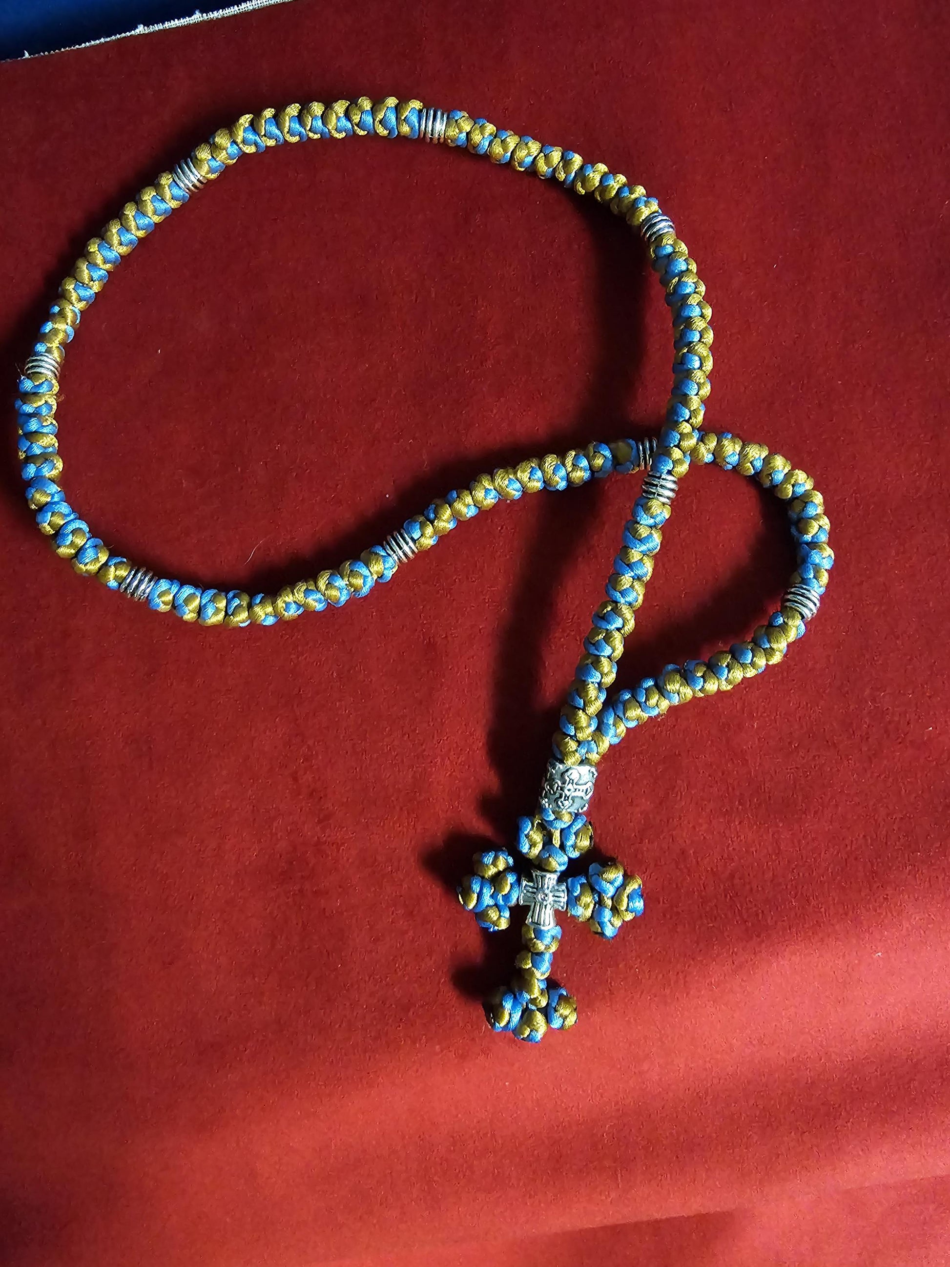 100 knot Sky Blue and Gold Orthodox Prayer Rope Komboskini-Brojanica~Chotki