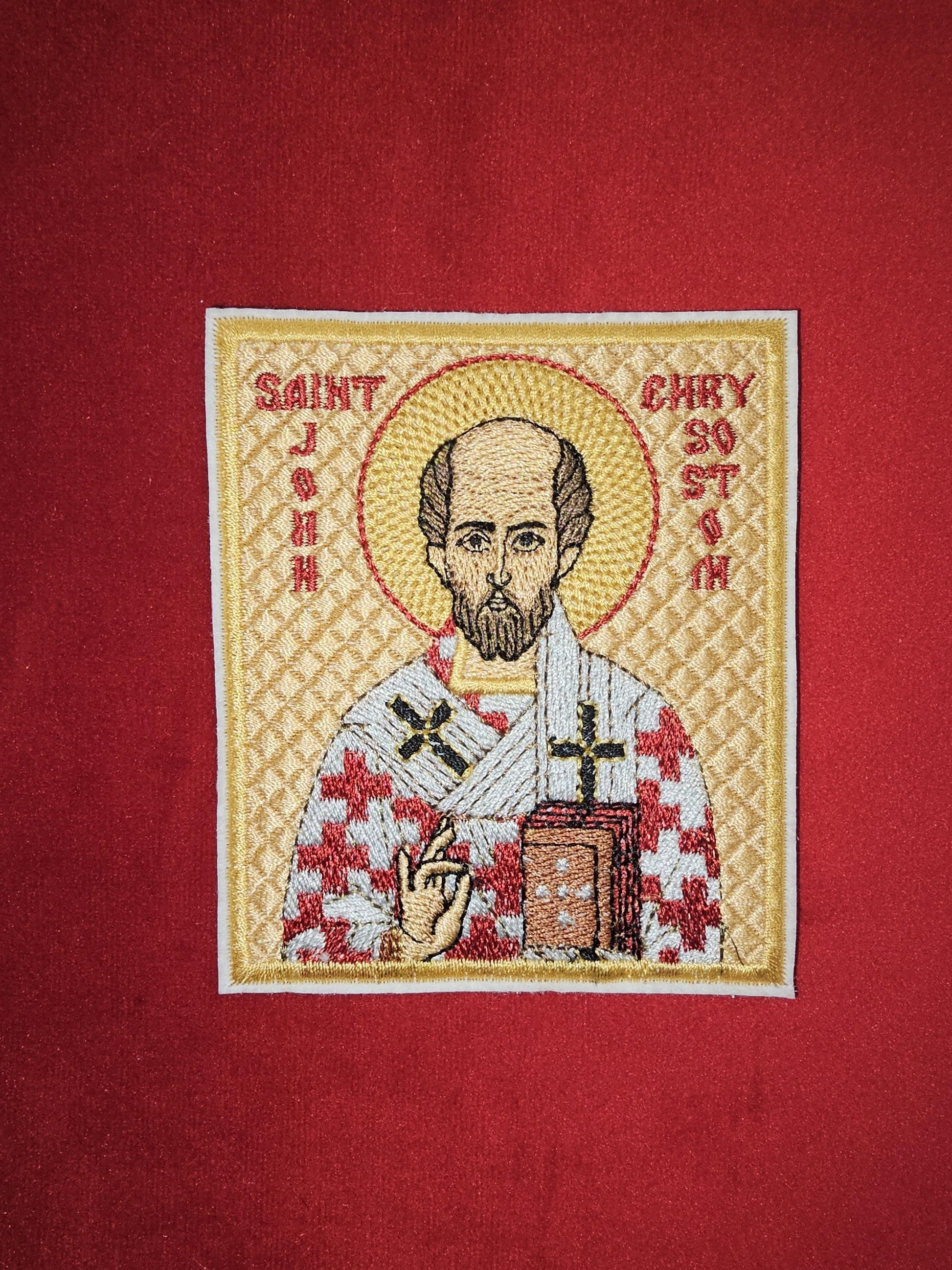 3.35x3.94" Saint John Chyrsostom Orthodox Embroidered Pocket Icon