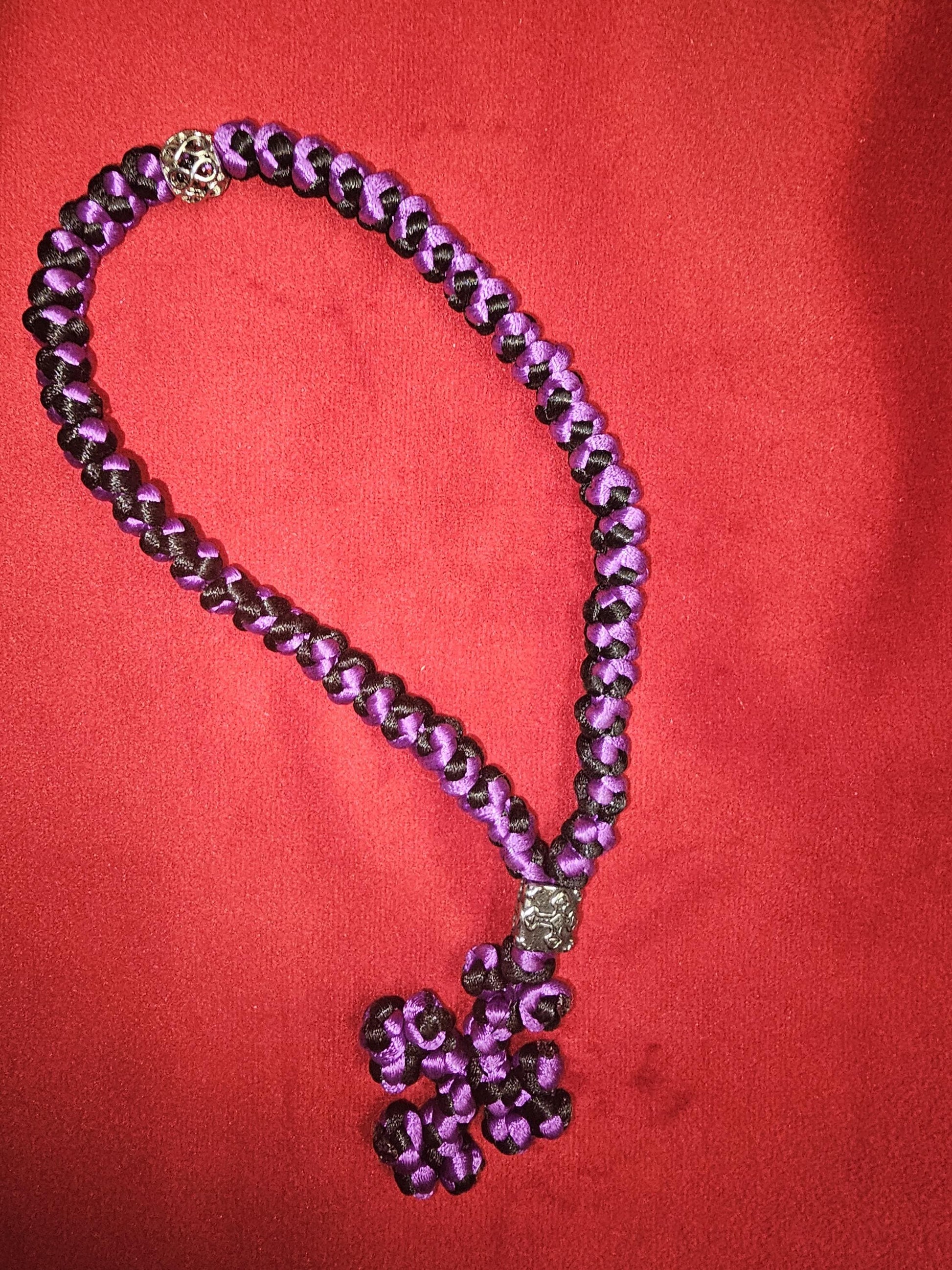 50 knot Black and Purple Orthodox Prayer Rope Komboskini-Brojanica~Chotki