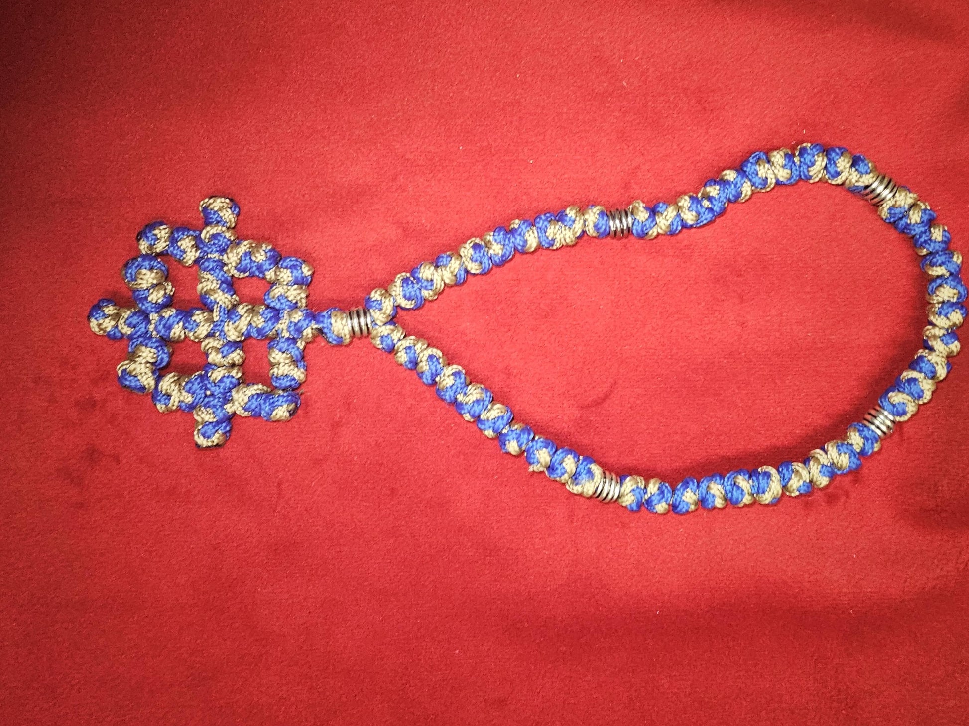 Discover serenity and spiritual connection with our meticulously handcrafted 50 knot blue and silver prayer rope made in our shop, expertly made using durable nylon knotting cord for lasting quality. Each knot is tied with care and intention, ensuring a reliable and beautiful prayer accessory that enhances your daily devotions.