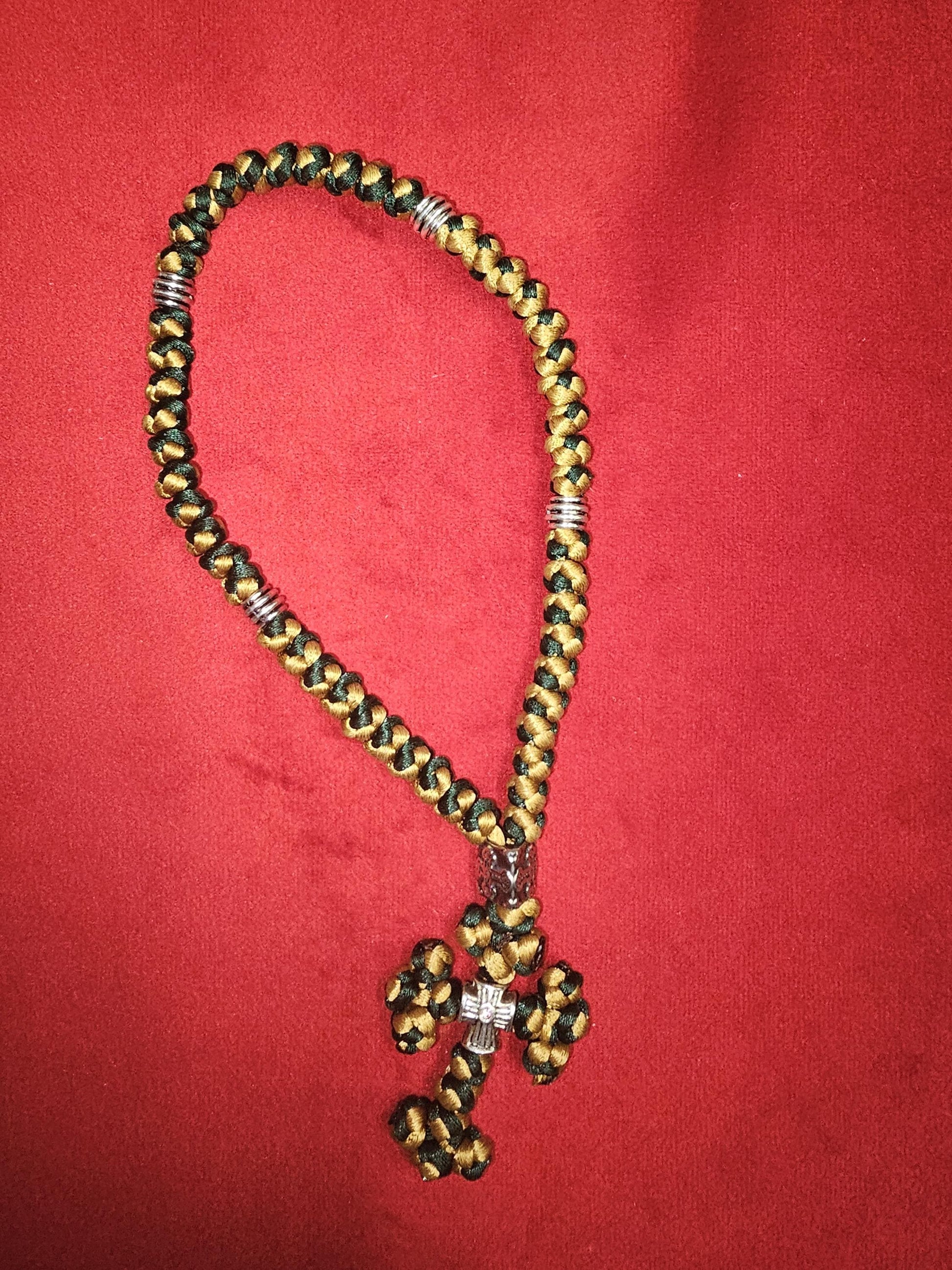 50 knot Dark Green and Gold Orthodox Prayer Rope Komboskini-Brojanica~Chotki