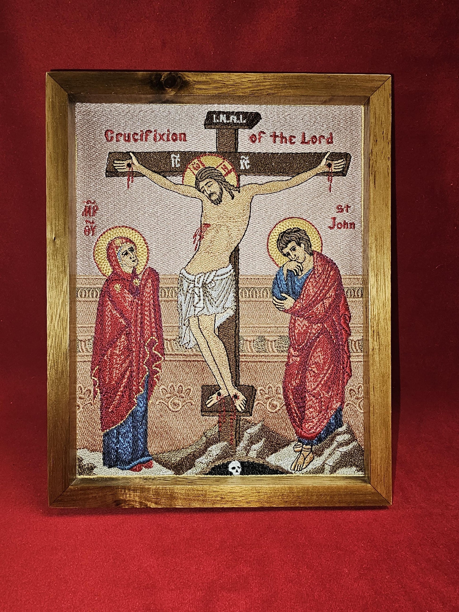This intricately embroidered icon is a timeless piece of spiritual art, perfect for personal devotion, home decor, or as a meaningful gift for loved ones. Add a touch of sacred beauty to your space with this exquisite Orthodox Byzantine icon of the Crucifixion.