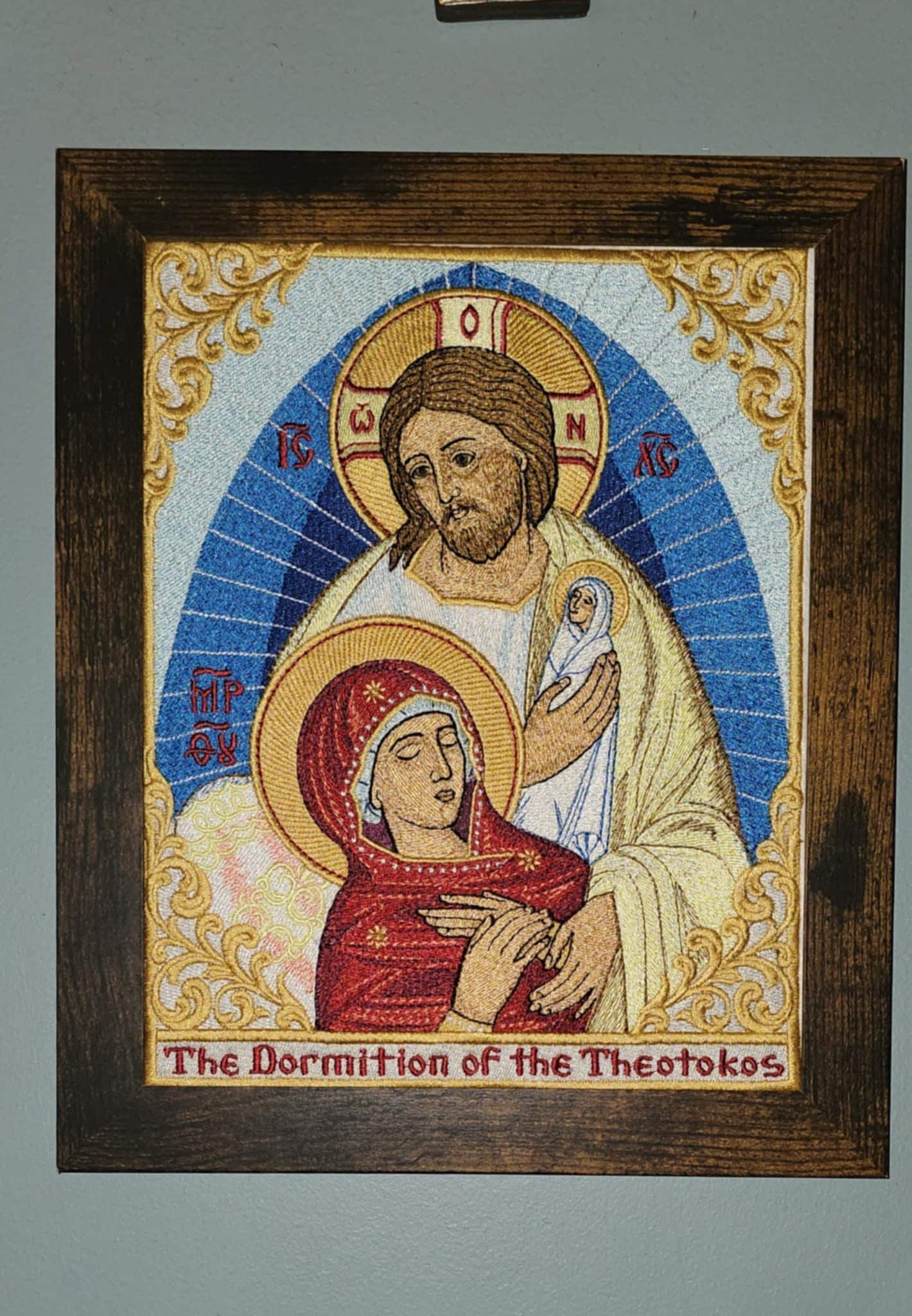 8x10 The Dormition of The Theotokos Embroidered Byzantine Orthodox Christian Icon