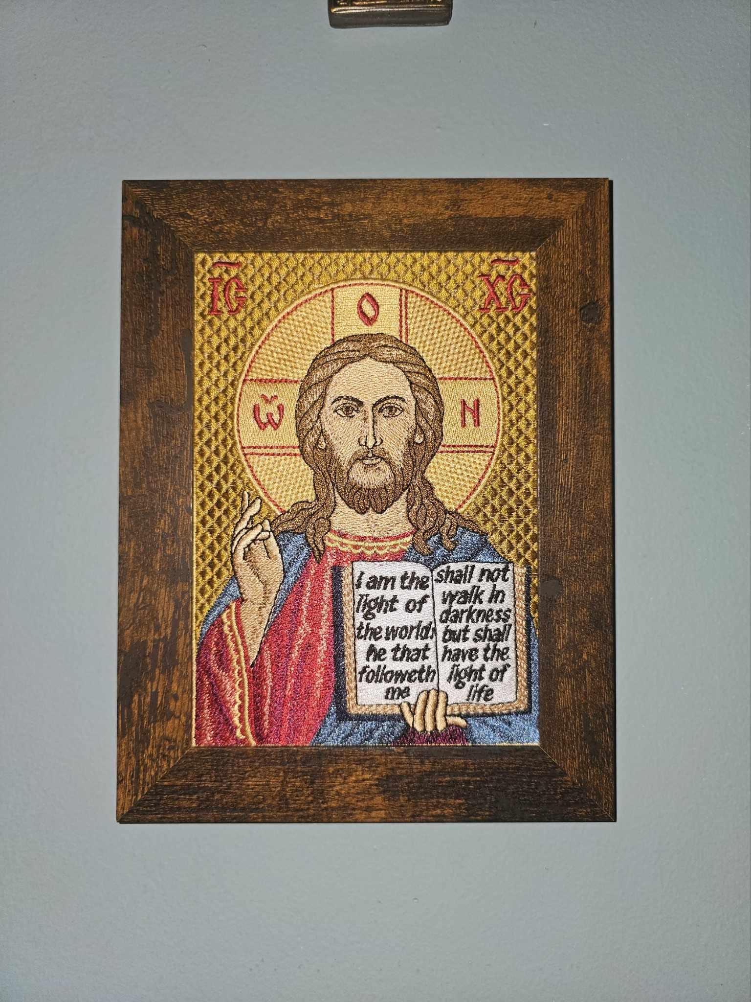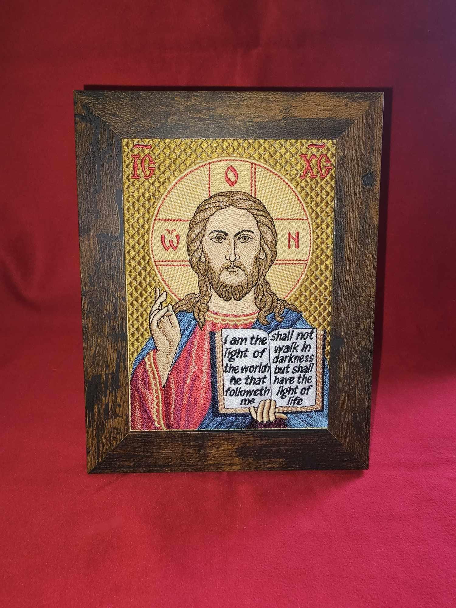This beautifully embroidered **Byzantine Orthodox icon of Christ the Lightgiver** is a powerful representation of Christ as the source of divine illumination and truth. Rooted in centuries-old Orthodox tradition, this sacred image reminds us of Christs words: **“I am the light of the world. He that followeth me shall not walk in darkness but shall have the light of life (John 8:12).**