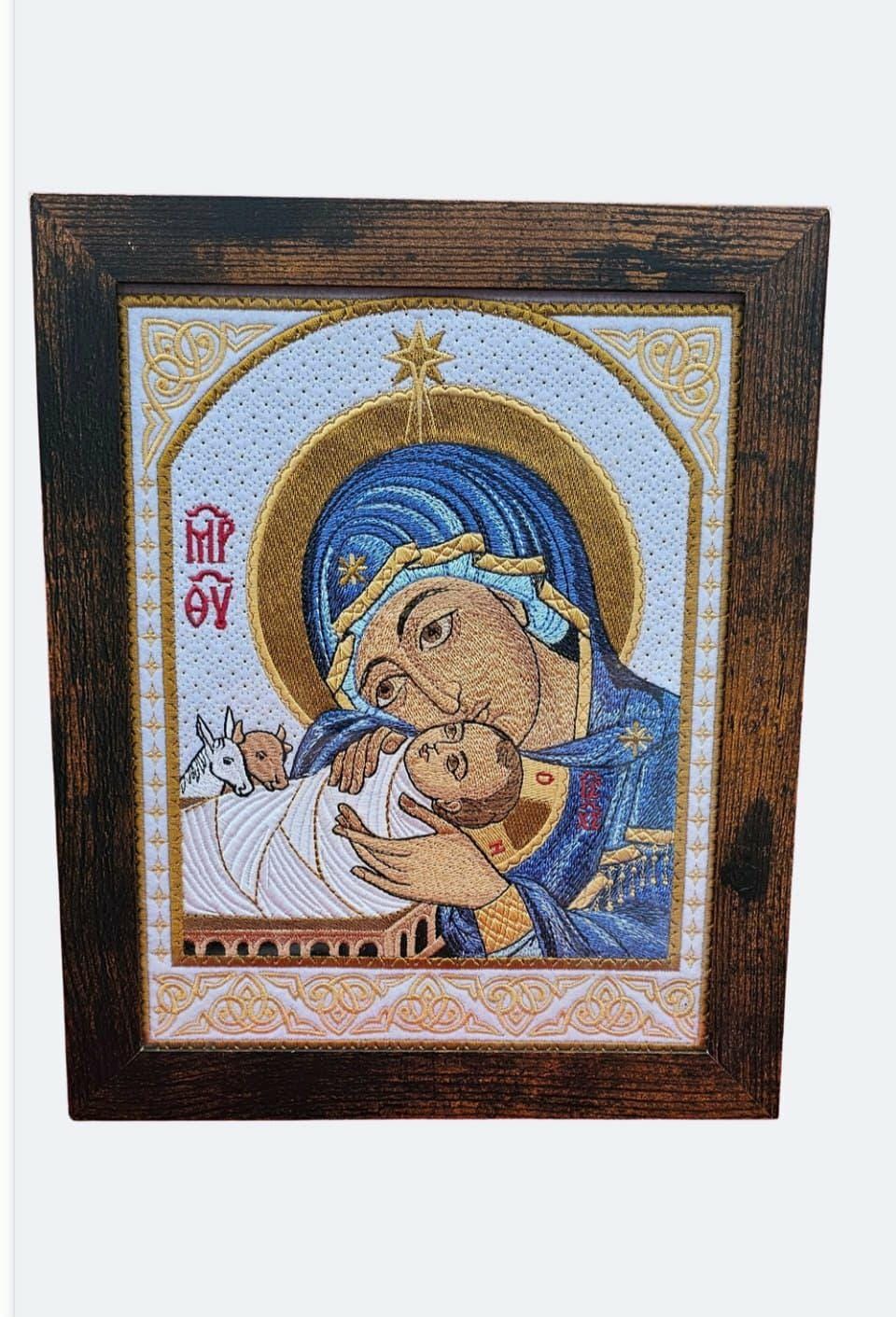 Embroidered Nativity Icon Theotokos & Christ Child, Orthodox Wall Art