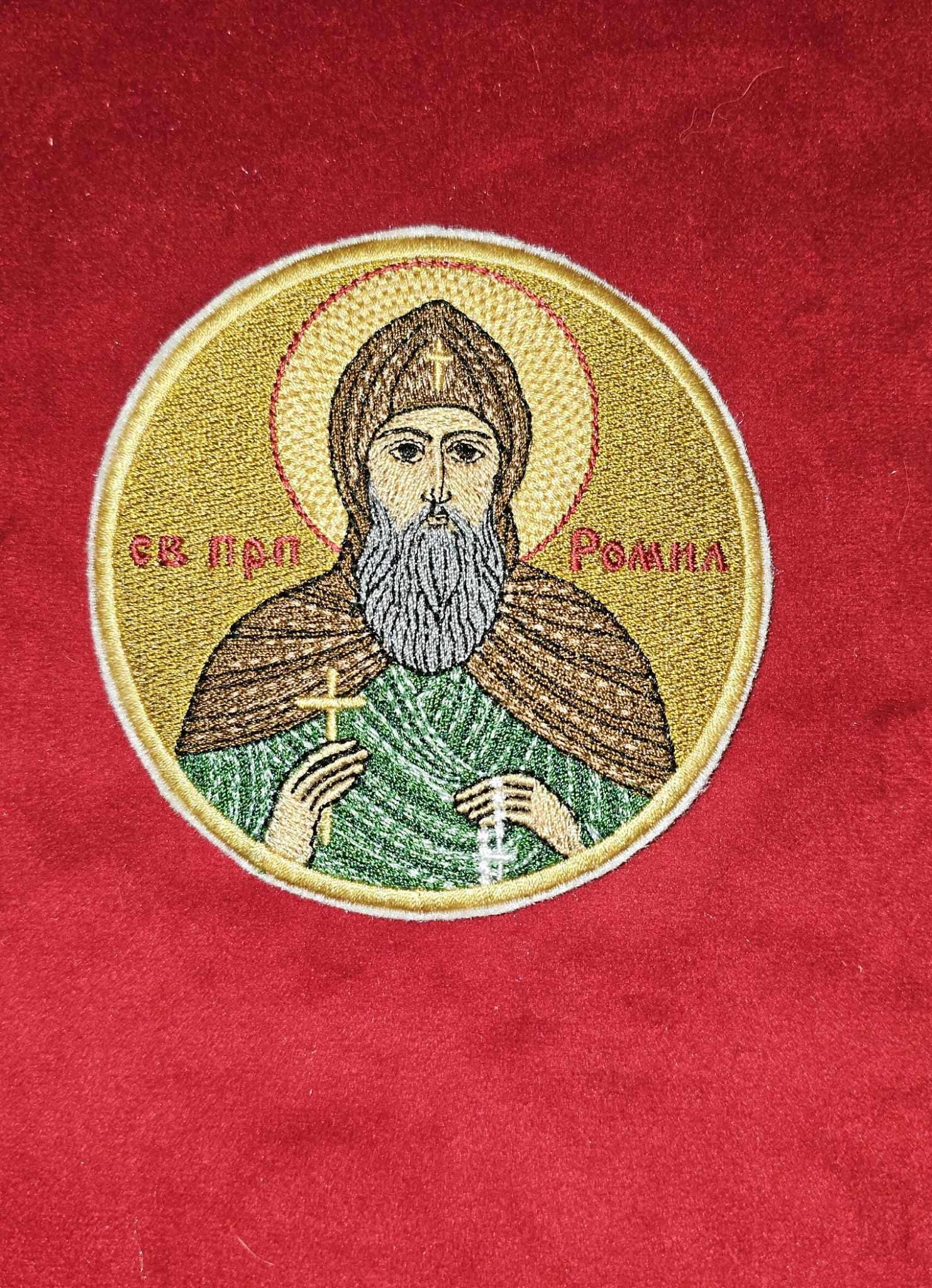 **Fully Embroidered St. Romylos Mini Pocket Icon or Patch 4 Inches**