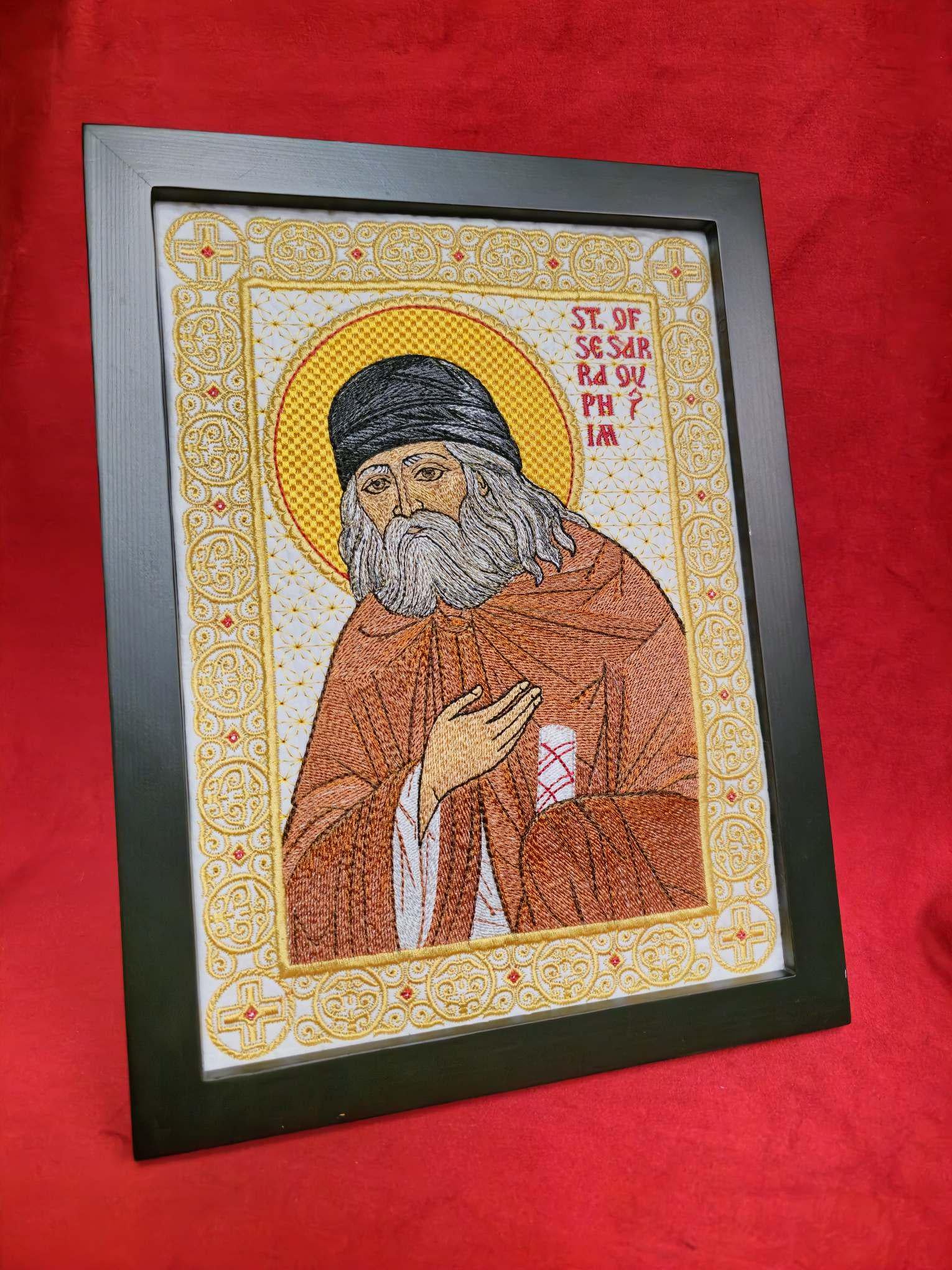 - **Features:** Detailed depiction of St. Seraphim of Sarov, capturing his serene expression and holy presence
