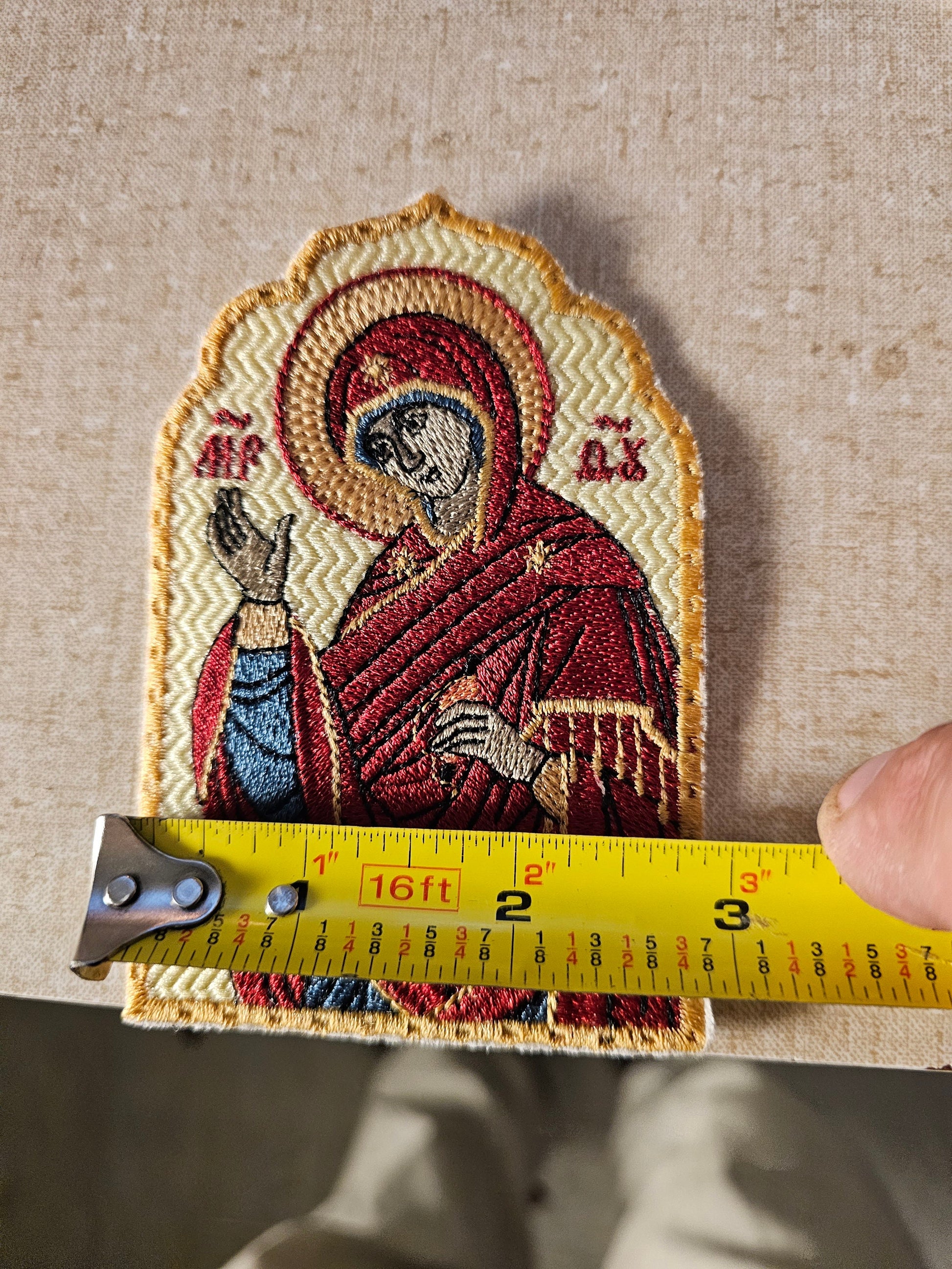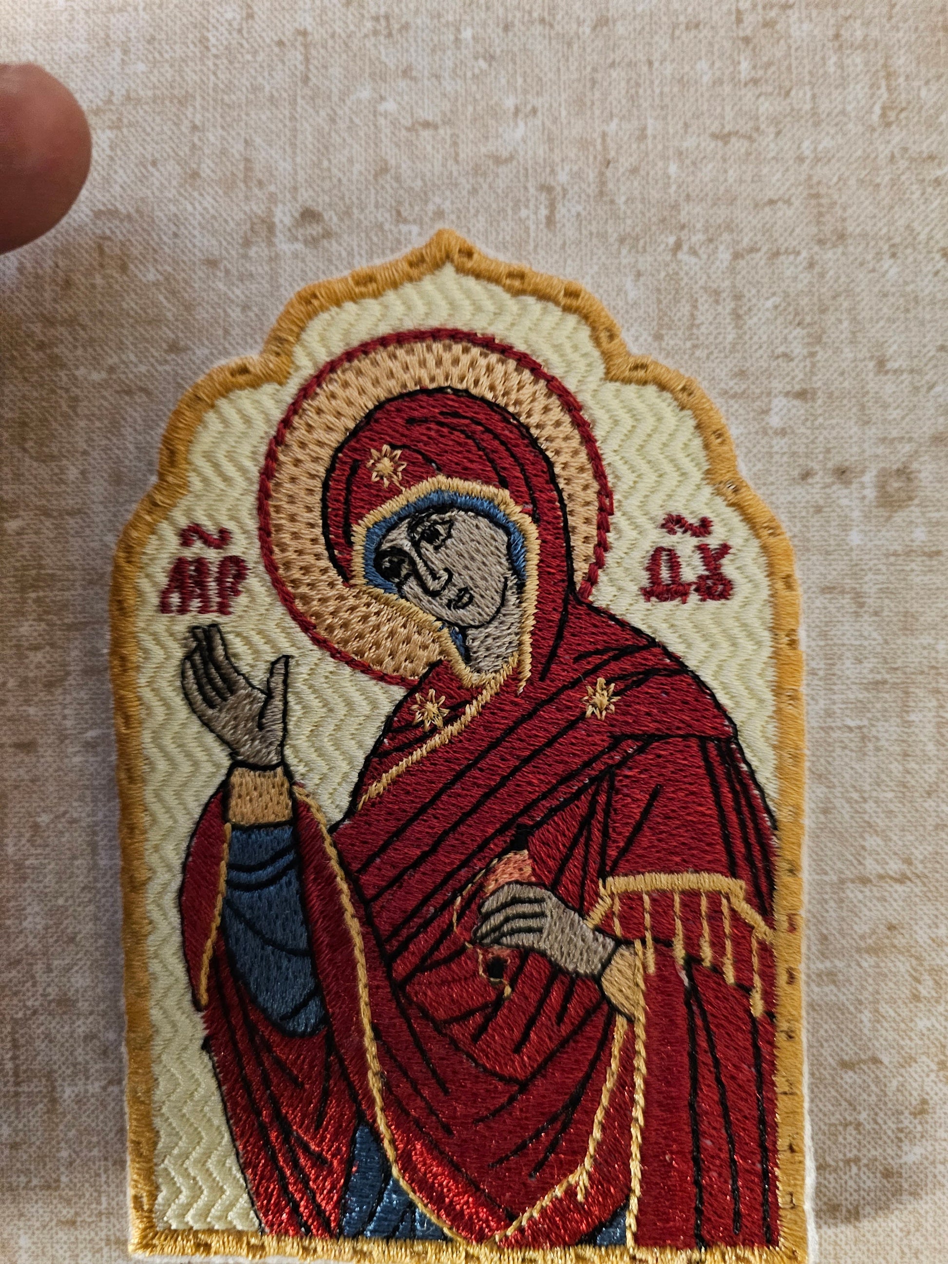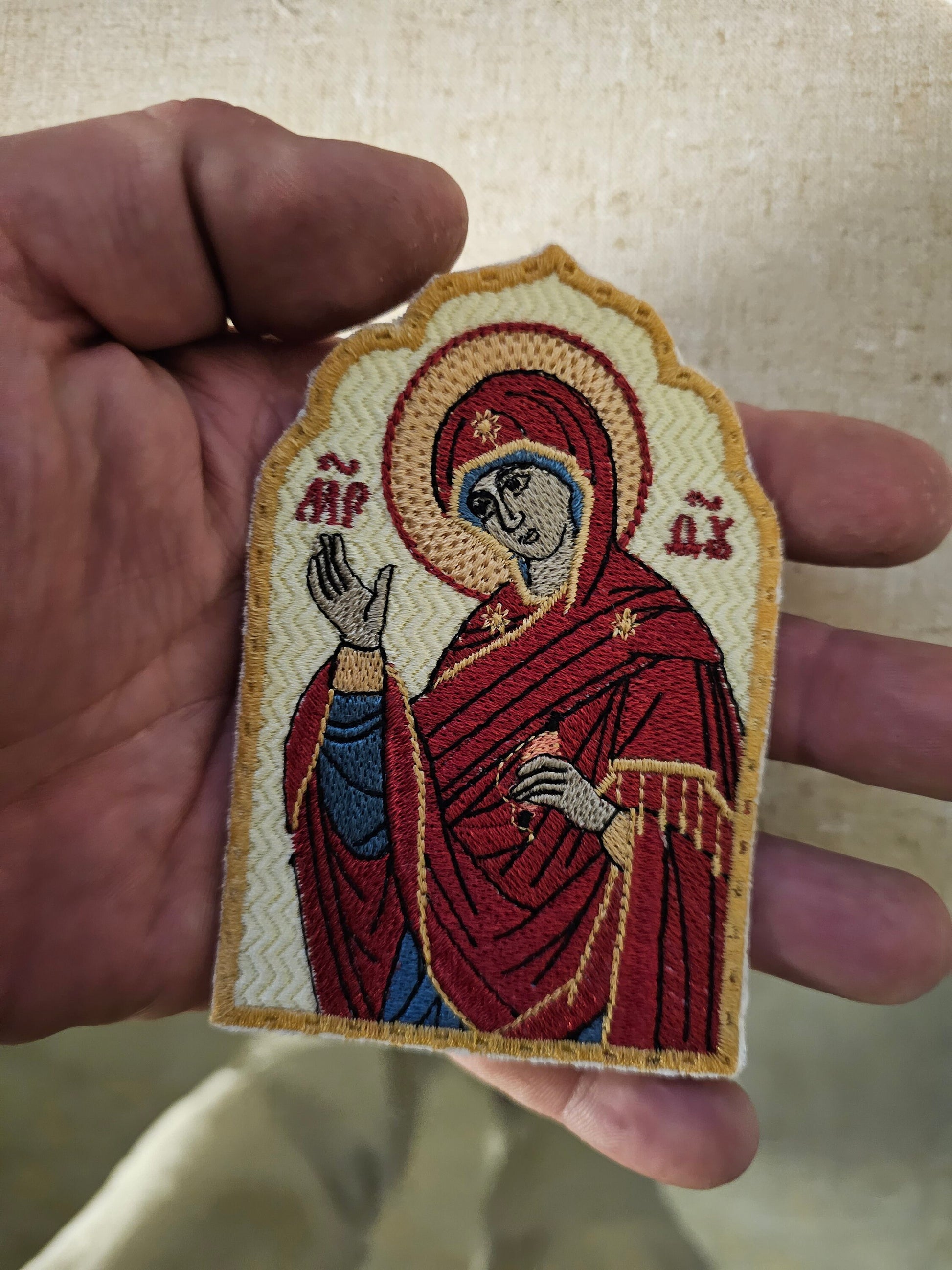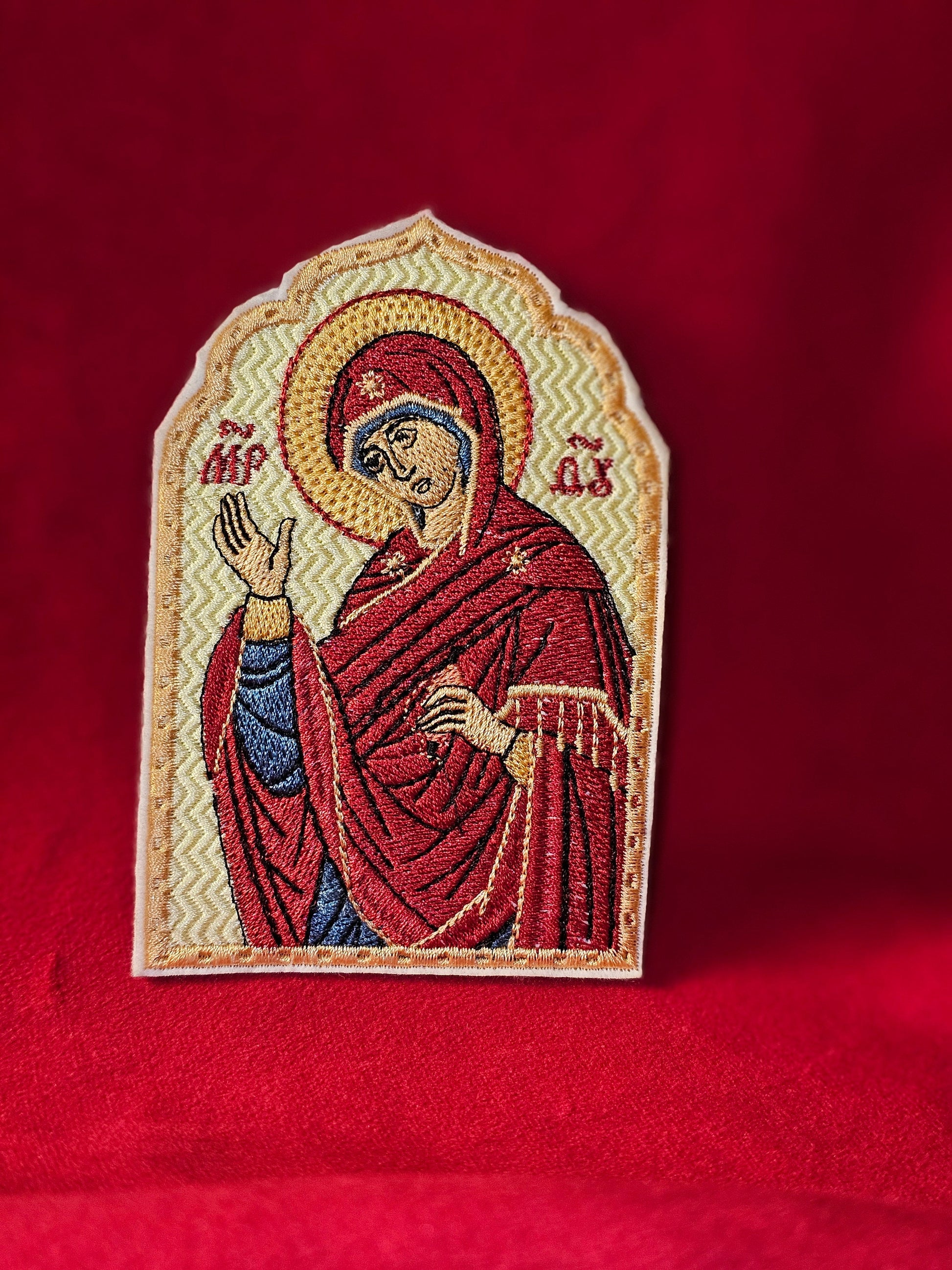 This pocket icon of Mary Theotokos Annunciation is a beautiful piece of art, handmade with care in the United States. It is a perfect collectible item for those interested in religion and spirituality, specifically Christianity.