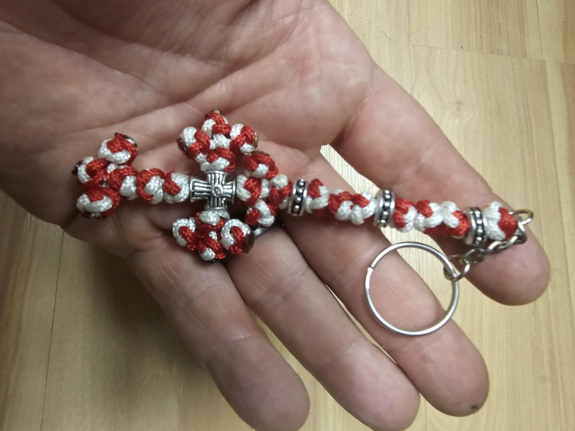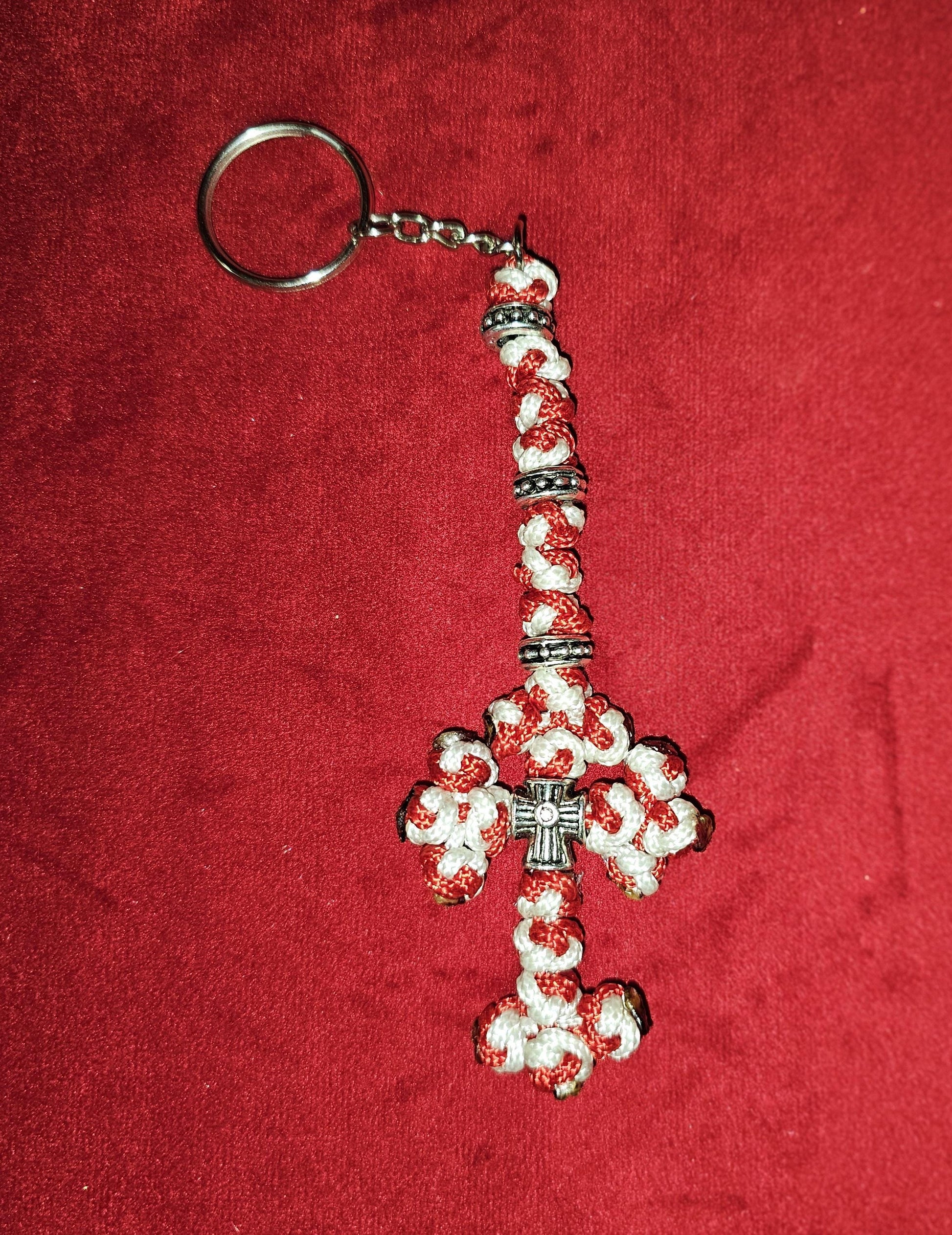 Red and White Orthodox Cross Religious Keychain