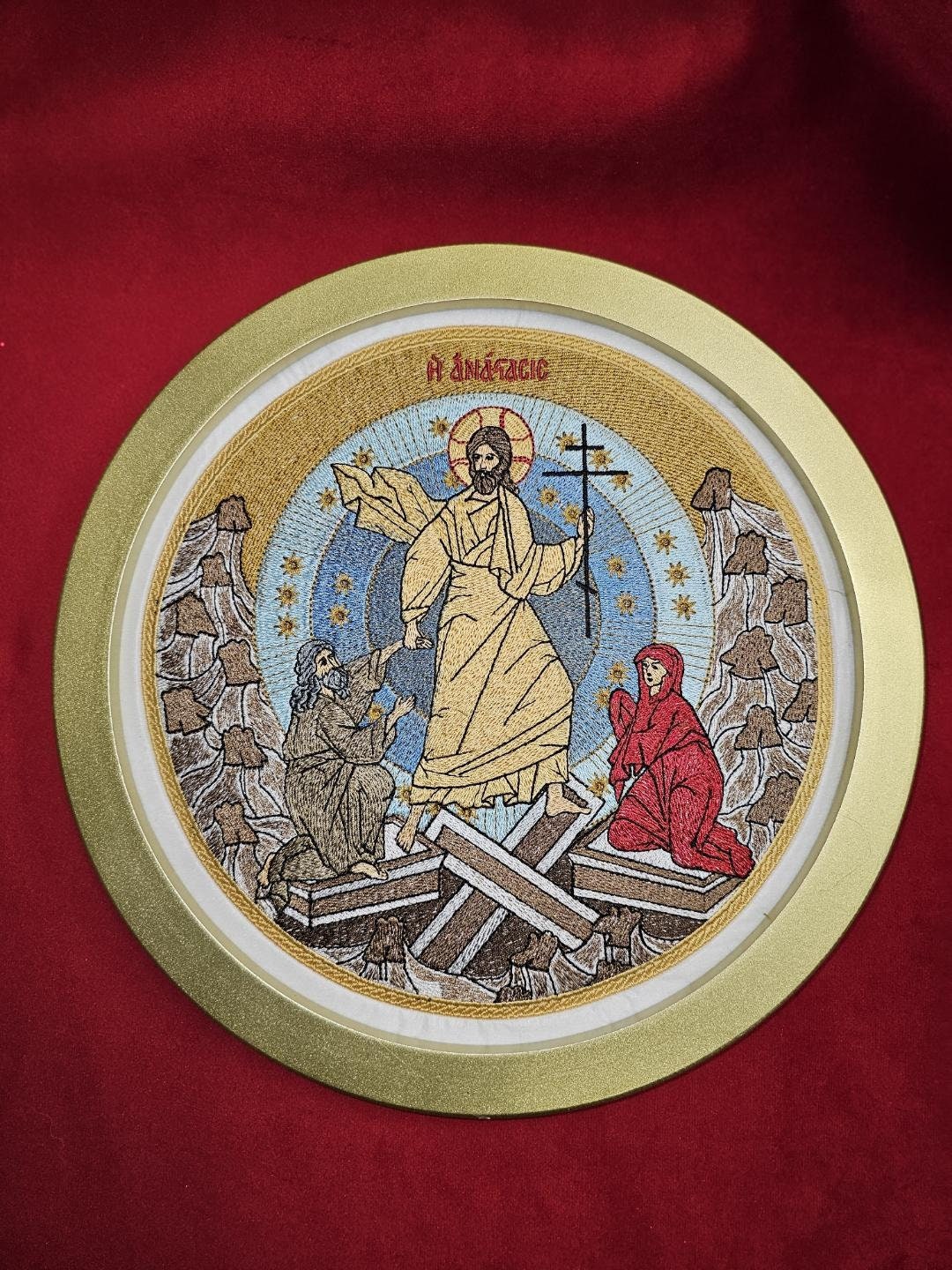 Immerse yourself in the divine beauty of our embroidered icon portraying the Resurrection of Christ, also known as the Harrowing of Hades. Each intricate stitch is meticulously crafted with devotion and precision, requiring almost three hours of painstaking work by skilled artisans. This 10-inch Byzantine Orthodox icon captures the profound significance of Christ‘s victory over death, a timeless symbol of hope and redemption in Christian faith. Elevate your sacred space with this exquisite piece of religious art, ideal for home altars, prayer corners, or as a meaningful gift for loved ones. Embrace the spiritual essence and masterful craftsmanship of this unique embroidered icon, a testament to faith and tradition.