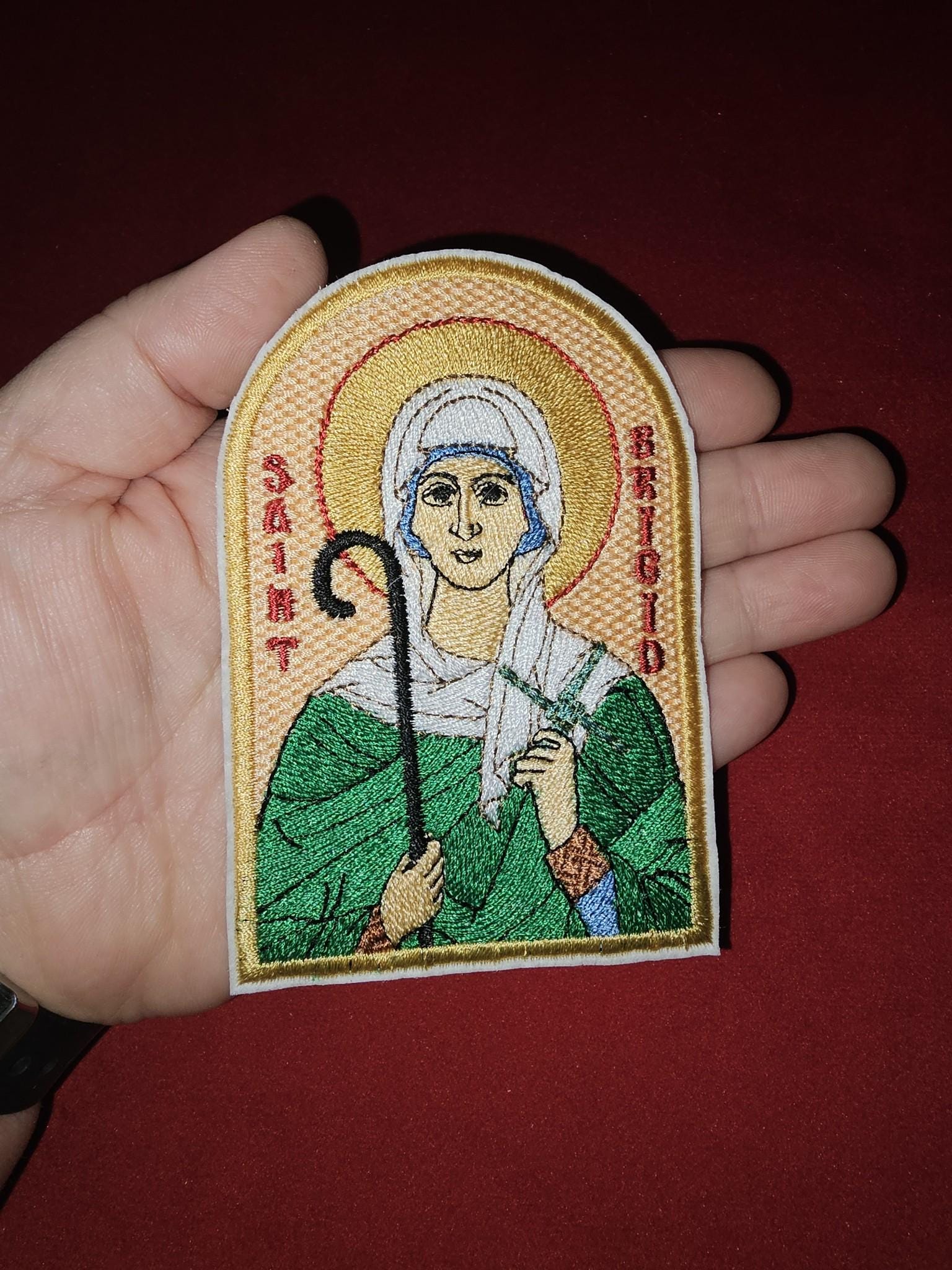 **Saint Brigid Pocket Icon | Byzantine Orthodox Christian Religious Art | 2.75×4.5 Embroidered Icon**