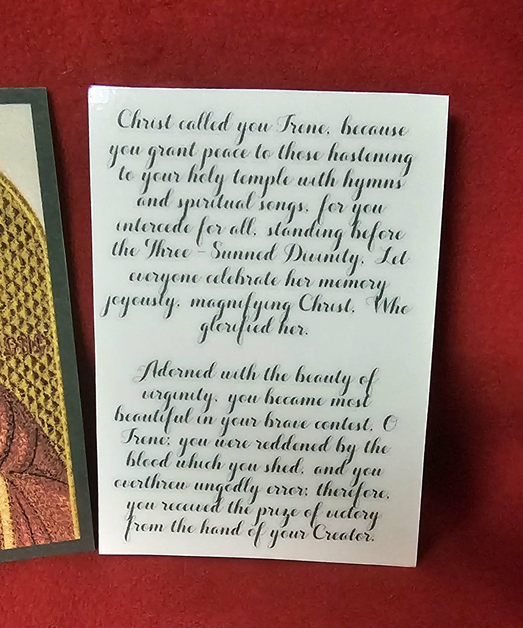 Saint Irene Prayer Card 2.38"x3.38" Laminated Orthodox Icon Card Small Pocket-Size Holy Card Handmade Devotional Gift