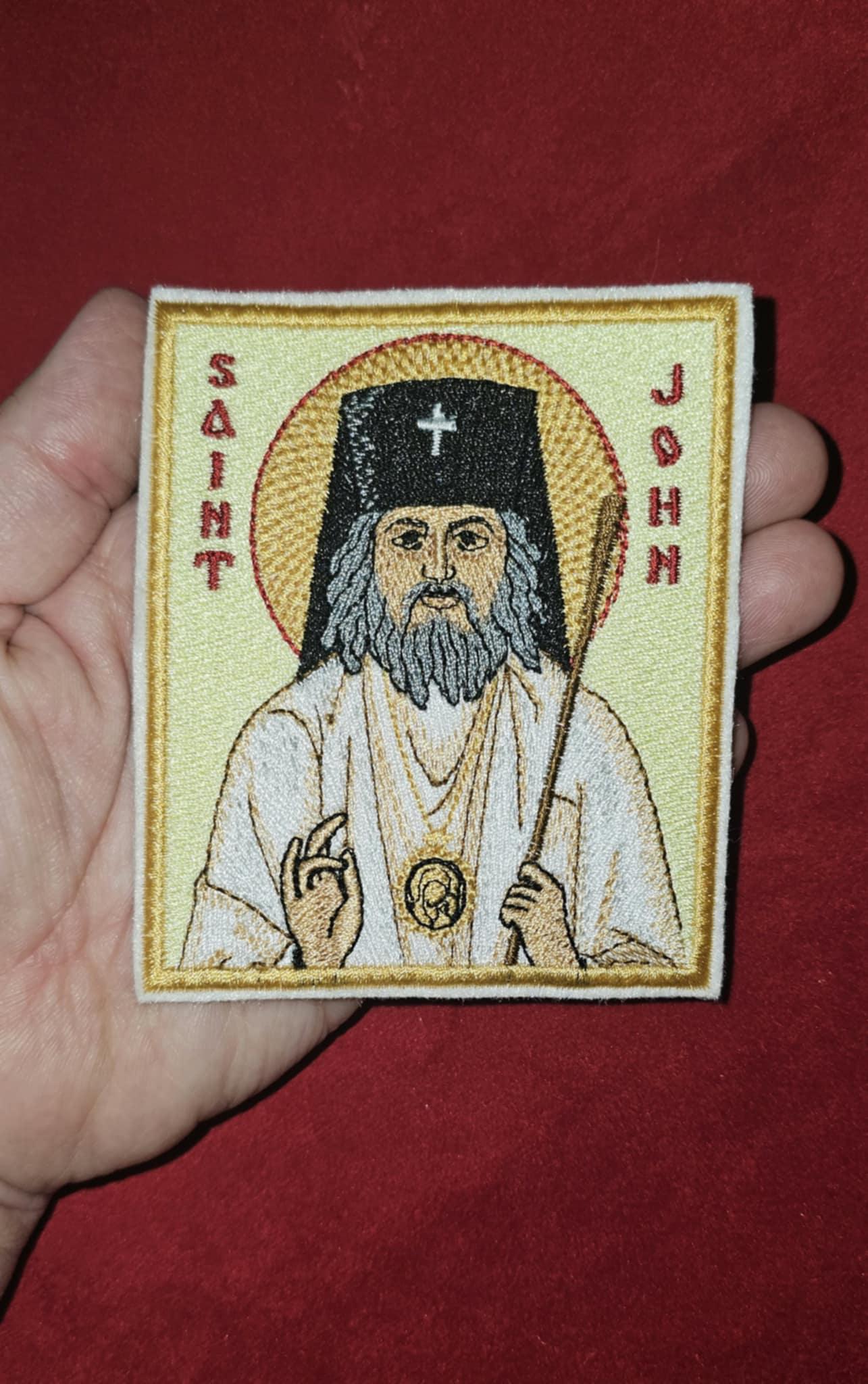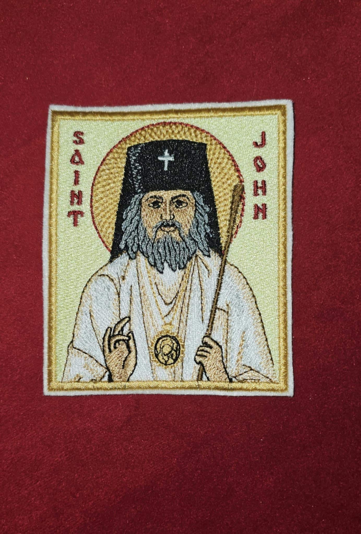 Honor the memory of one of the most beloved modern saints of the Orthodox Church with this pocket-sized embroidered icon or patch of **Saint John Maximovitch**. Measuring 3.35×3.94 inches, this item is ideal for use in prayer corners, travel bags, or as a devotional keepsake.