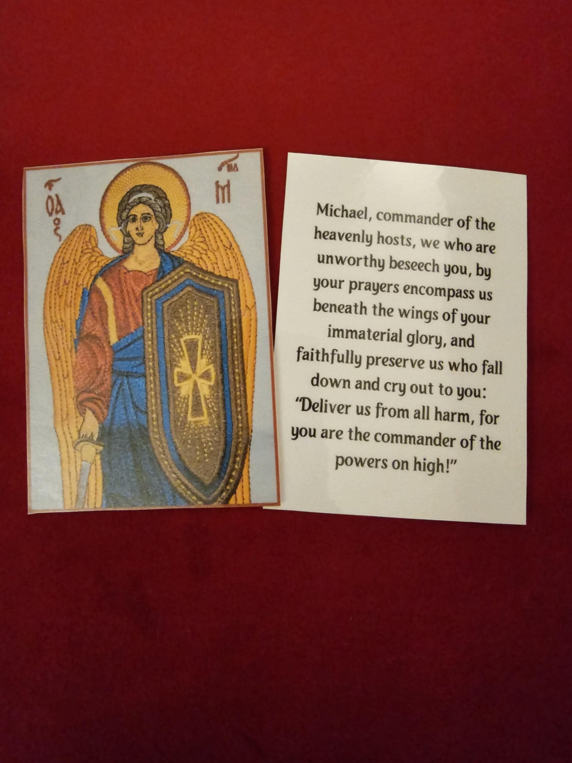 - **Back of the Card**: Includes a powerful Orthodox prayer to Saint Michael.