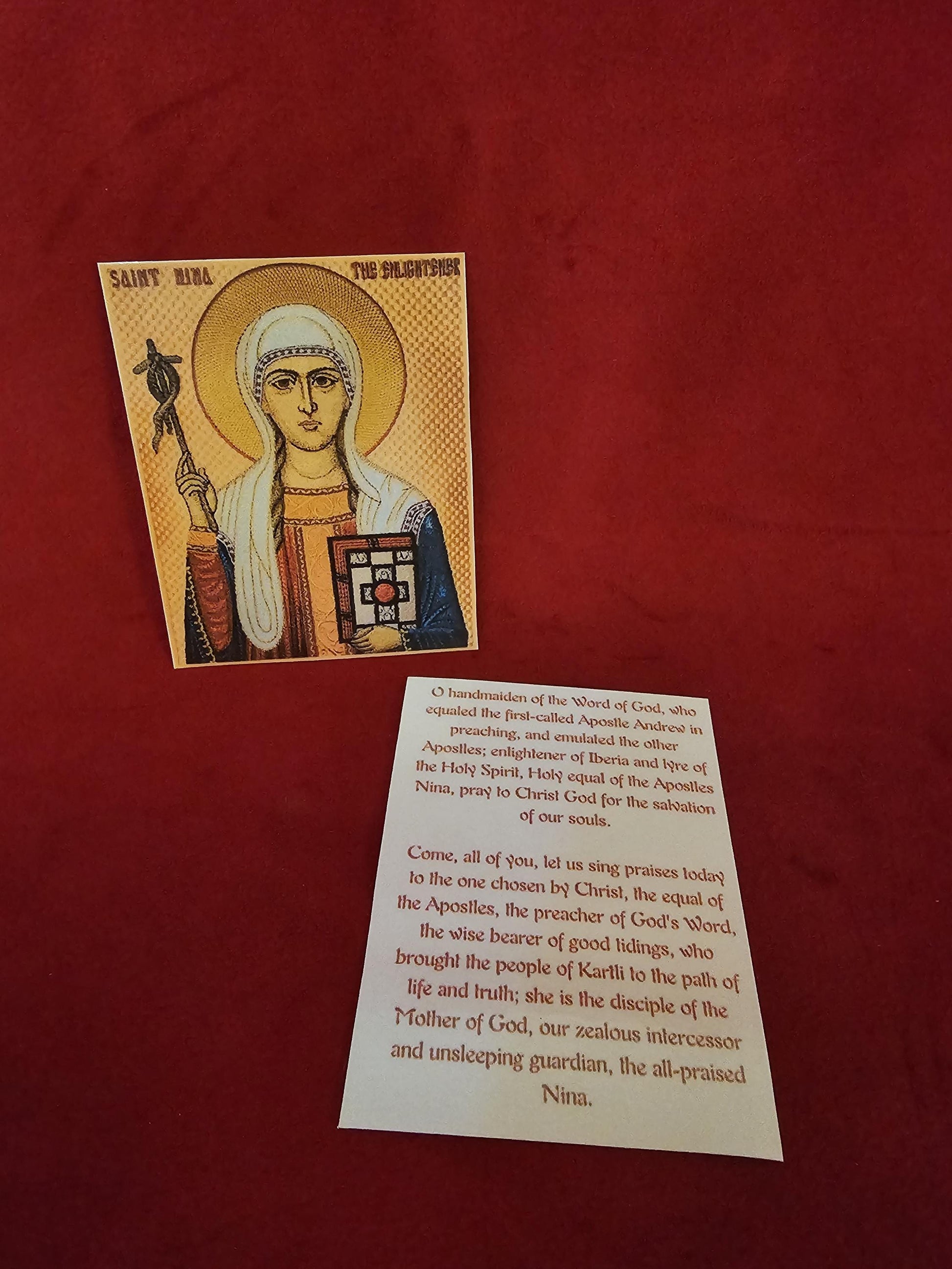 This prayer card is not only a beautiful representation of Saint Nina but also serves as a source of inspiration and guidance in your daily life. Keep it in your wallet, purse, or prayer corner to remind you of her faith and dedication.