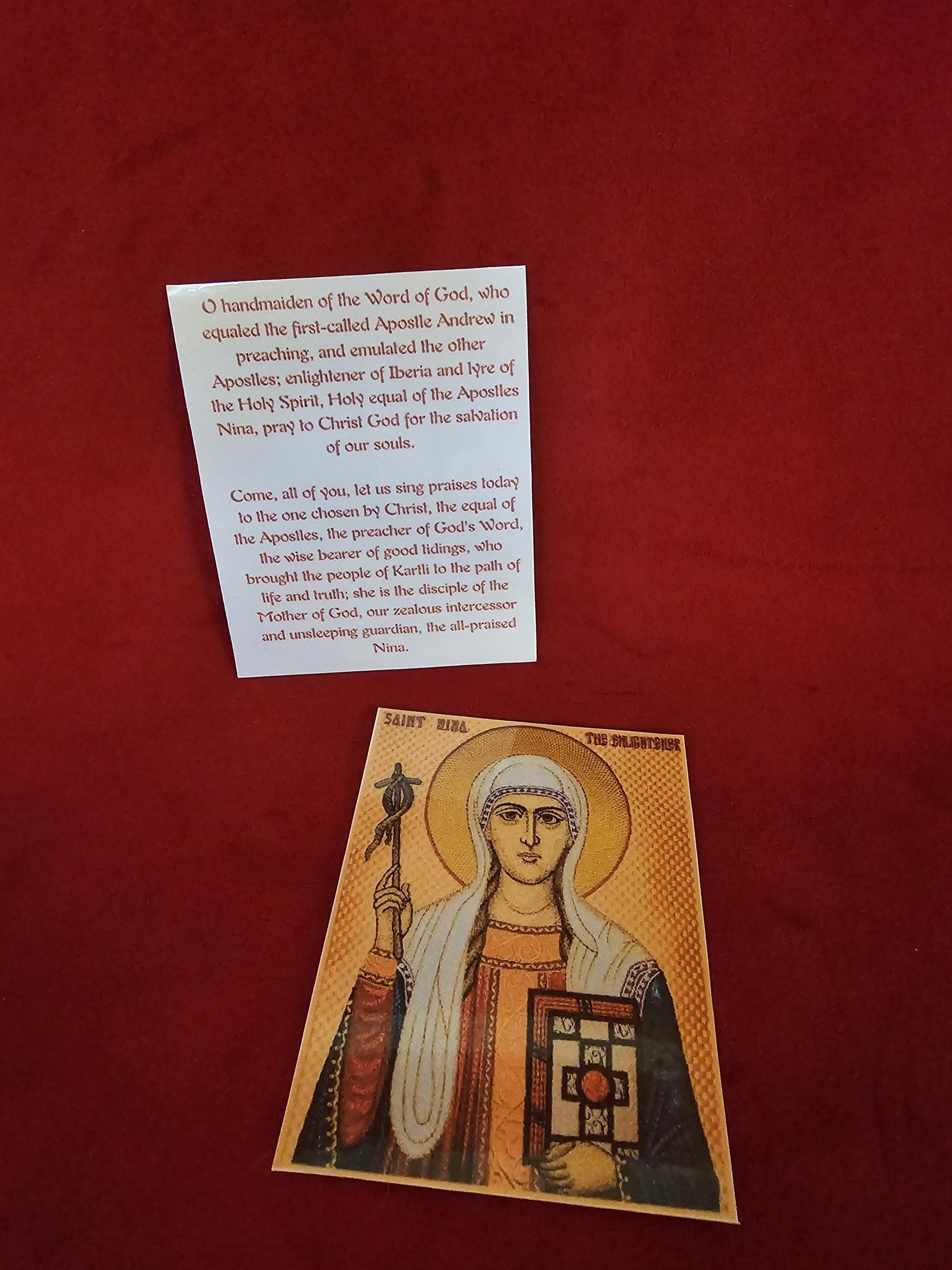 - **Design:** Stunning depiction of Saint Nina, with a prayer or inspirational message on the back