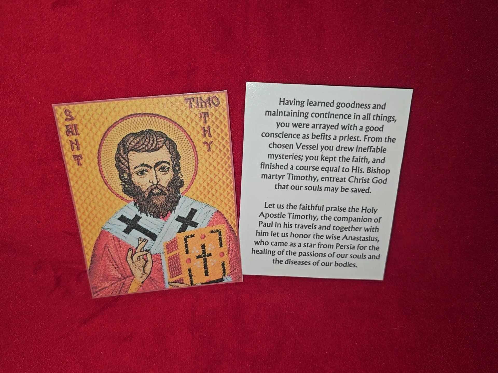 Bring the blessings of Saint Timothy into your daily life or share it with someone special. Order now and enrich your spiritual journey with this cherished Orthodox prayer card!