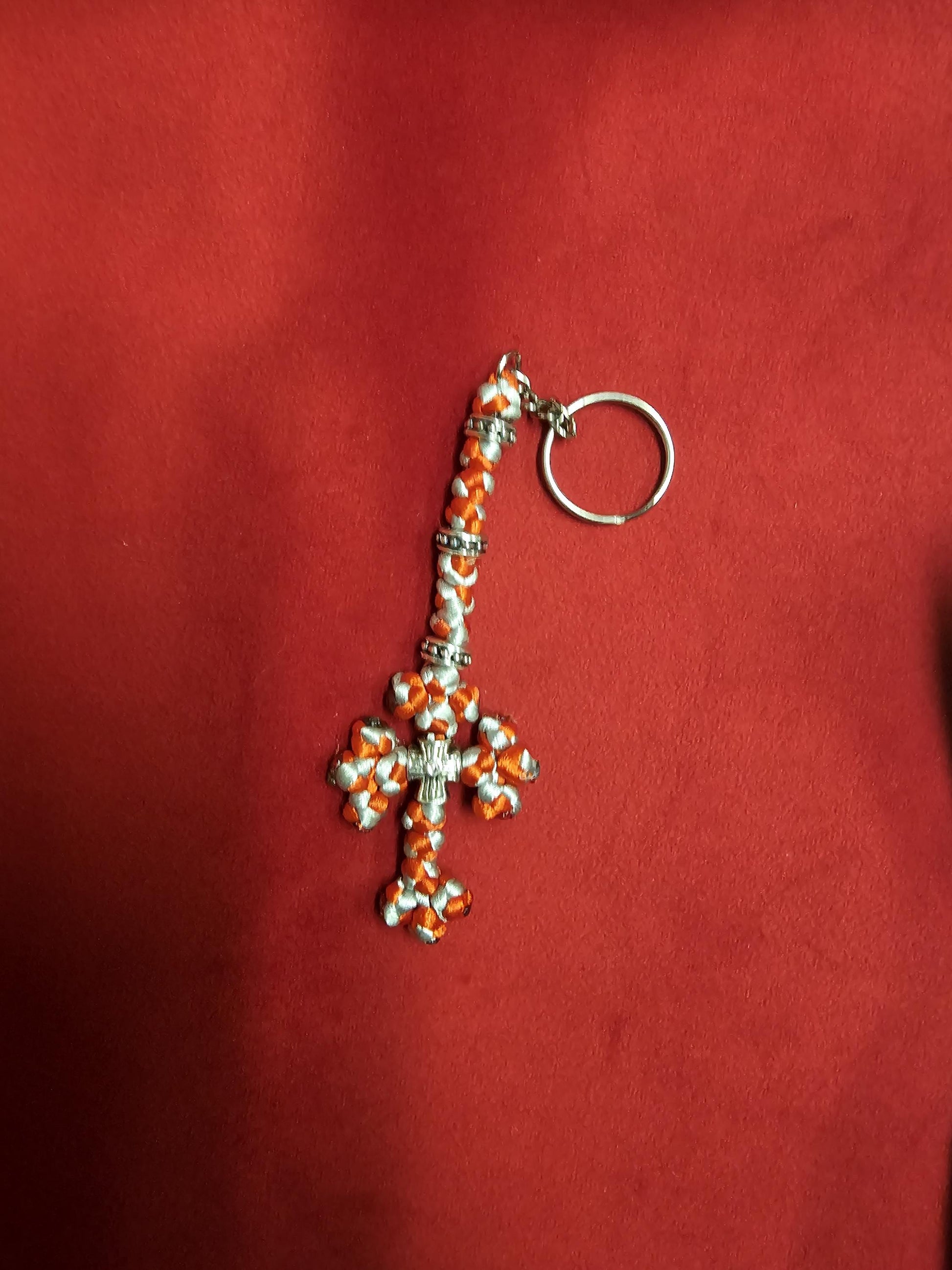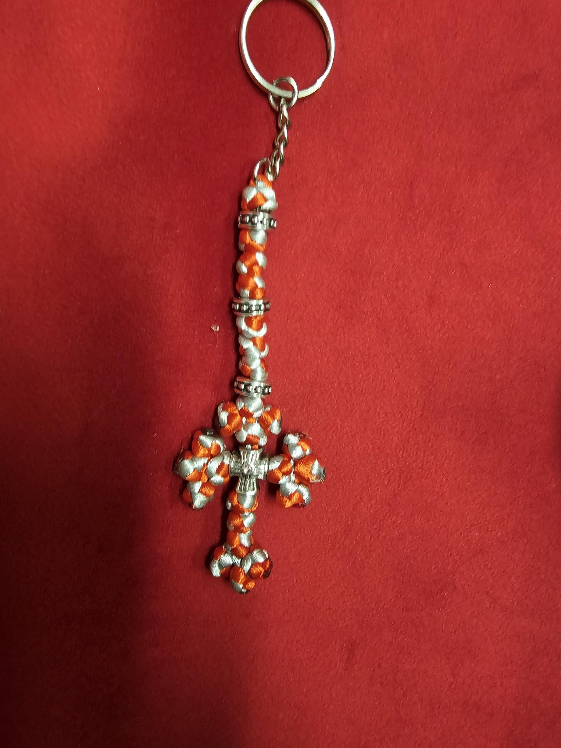 Scarlet and Grey Orthodox Cross Religious Keychain